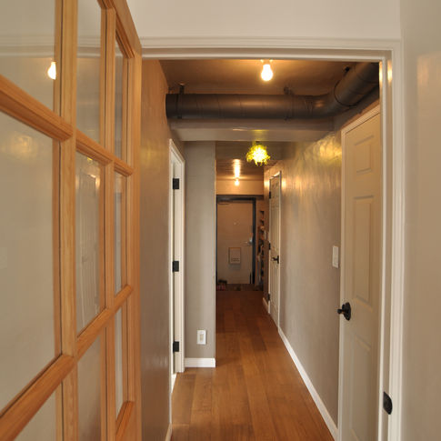 はじめての試みである「DIY PROJECT」。お施主さんの予算を下げるためにお手伝いして いただき、共に作り上げた想いが詰まった場所です。スケルトン部分には光触媒塗装を。天井を高くしたかったので、スケルトン風にしダクトをむき出しに。天然木の米松を天井に組んだことで奥行き感のある空間になりました。トイレの床はモルタル金鏝仕上げ。お施主さん含めみんなで協力して作り上げた、想いの詰まった空間となりました。